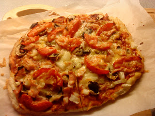 Cook for about 20 minutes @ 210C. Yummy - best home made pizza I ever made.